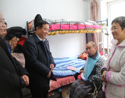 在困难教职工党员扆红家家中,董文才向家属详细了解其身体情况和生活状况,并希望他保重身体,鼓励他增强与疾病做斗争的信心。