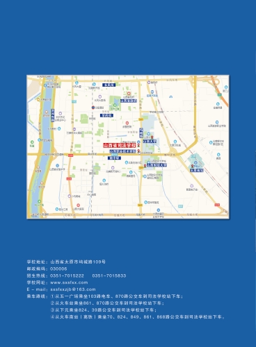 电 话: 0351-7015222/7015833 (招生办) 0351-7015100 (校办) 0351-7015100 (传真)